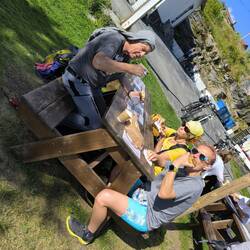 Pasala je sveže skuhana kava skupaj s piškoti in razgibavanje nog na močnem vetru, ki prepiha napačno izbrane jopice. V štacuni je toliko bolj prijetno toplo, kjerLes mer