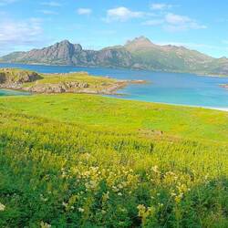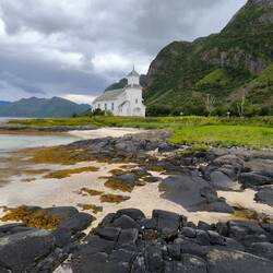 Dan s top vtisi. Tea break ob čudoviti cerkvici. Henningswaer. Akvarium... Čas je, da se ustaliva in si privoščiva umirjen večer... Ampak, Lofoti imajo danes prav šov! Spiva ob Austnesfjorden...Les mer