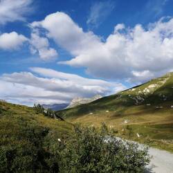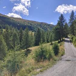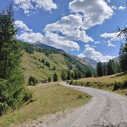 Za 10 eur te spustijo v dolino Val Algentera. Ene 10 metrov asfalta se kmalu spremeni v prašen makadam, ki se vzpenja skozi macesnov gozd.