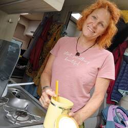Včeraj sva prespala na mestni sostici (z vsemi servisi - vodo ven, vodo not ipd.) in zjutraj peš odšla do centra po kruh.