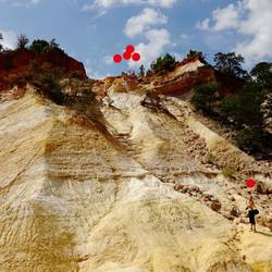 In der Sahara, der ersten Formation in diesem Ockersteinbruch, hört man das erste große Staunen. Am lautesten von mir, den ich liebe diese Naturschauspiele. Die Kinder erklimmen den ersten felsigen Gipfel und mit ockerfarbenem Kopf winken sie auf die im Tal geblieben, Carlotta und mich;-) Carlotta stopft sich die Taschen voll Reiseandenken, dem Sand der Ockersahara;-).