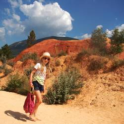 Wieder recht früh auf den Beinen ist unser Ziel heute der Colorado Provencal, eine in verschiedenste Ockertöne getauchte Felsenlandschaft. Mit festem Schuhwerk und Wasserproviant gerüstet entscheiden wir uns für die längere der beiden Strecken. Trotz des beeindruckenden Schauspiels versuche ich den Begriff "längere Strecke" bei den Kindern zu vermeiden. Kommt nie gut an! Am besten man erwähnt nur "leichter Spaziergang". Und tatsächlich reden wir hier von nur 3,9 km!