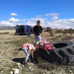 Auf dem Weg in unserer vorletztes Zuhause laden uns eine Wildwest Landschaft und Hunger zum Picknick irgendwo im spanischen Nirgendwo ein. Dort, wo es weder Handyempfang noch Internet gibt, blüht die Phantasie. Wir drehen Filme mit dem Trendsetter Vincent auf verlasser Straße. Kiloweise Kristallsteine werden gesammelt - ich hab keine Ahnung, wo die die alle wieder verstecken wollen - Jonglierübungen unter Vincents Anleitung , Naturbeobachtungen und spanisches Weintasting - ein grandioses Picknick.Lue lisää