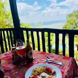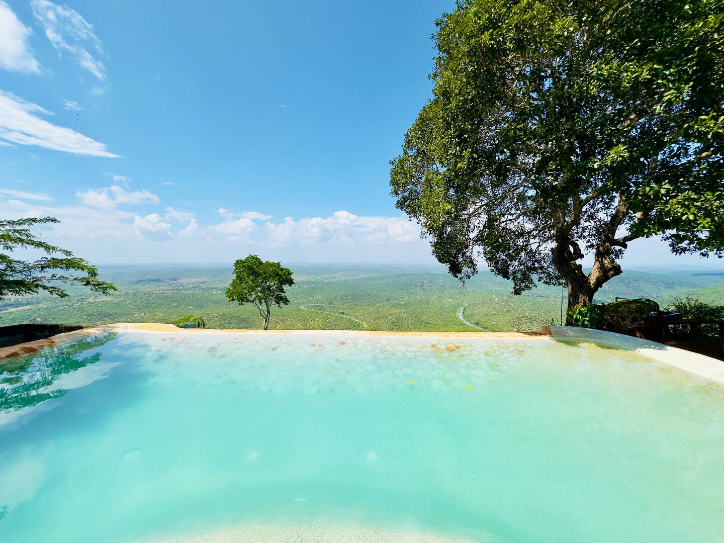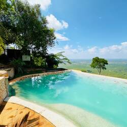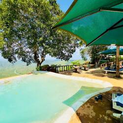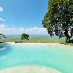 Nach der Anstrengung endlich lecker Mittagessen und im Infinitypool entspannen… und am Ende noch die Elefanten in der Ferne entdeckt