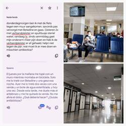 Na verloop van tijd was mijn nummer aan de beurt en een dokter, die alleen Spaans sprak, en een verpleegster die goed Engels sprak bogen zich over mijn schaafwond. Ik was niet voor niets gekomen aan hun hoofden te zien want ze namen het heel serieus. Als eerste moest de wond goed schoongemaakt worden, alweer au au au au au, en vervolgens moest er een xray gemaakt worden. Toen ik vroeg waarom zei de arts eerst dat hij wilde zien of er iets gebroken was, maar toen ik heel gedecideerd zei dat ik zeker wist dat er niets gebroken was zei hij dat hij wilde kijken of de infectie niet naar binnen geslagen was. Ja okay daar kon ik wel mee accoord gaan en begon de wandeling via groene xr pijlen naar de röntgenafdeling. Ik had een code gekregen om de deur te kunnen openen van de röntgenafdeling en na een tijdje was ik aan de beurt.