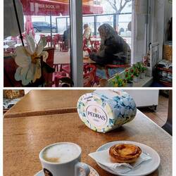 Vanmorgen was het dikke mist in Santa Luzia, dus toch maar eerst koffie en een pastel de nata. Daarna kwam de zon erbij en werd het mooi weer.