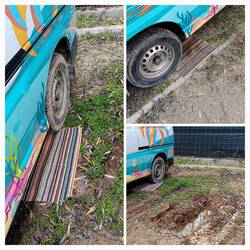 Koffie zetten en alles rijklaar maken. De oude kleedjes onder de achterwielen en langzaam aan proberen.