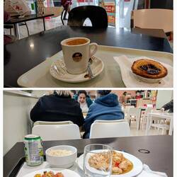 Ik paste op de parkeerplaats precies onder de luifel, dus ik sta voorlopig droog. Eerst koffie met een pastel de nata. Oh ja, ik moest nog een was draaien en dat kon hier prima. Was opgehaald, in de machine en intussen eten in het restaurant van de IM, kipstukjes met rijst en salade.