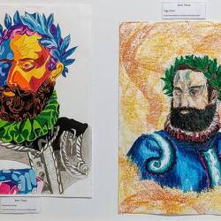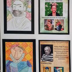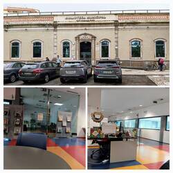 De bibliotheek is in een groot oud gebouw, maar binnen heel modern ingericht. Oh een trap naar beneden, wat zou daar zijn? Een expositie van werken die leerlingen gemaakt hebben met als thema Luis de Camoes, de grootste dichter van Portugal. Heel mooi om de verschillende werken en technieken te zien met allemaal hetzelfde thema maar toch zo verschillend, dat was een extra cadeautje vandaag.