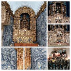 Het was vandaag een droge dag met wel wat bewolking af en toe. Heerlijk door het oude gedeelte kuierend kwam ik bij een heel klein, aan de buitenkant onopvallend, kerkje dat van binnen een altaar van goud had en zijmuren volledig bedekt met Azulejos, die kleuren van goud en blauw passen heel mooi bij elkaar.