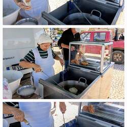 De haven op en de markt over, weer veel groenten en plantjes, maar ook een kraam waar een mevrouw stukjes gerezen deeg rond maakte en in de olie bakte, geen idee wat de naam ervan is, maar het zag me er te vet uit om te proberen.
