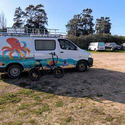 Het dorp heeft een heel gemoedelijke sfeer, ik sta nu op een braakliggend stuk grond waar nog een paar campers staan.