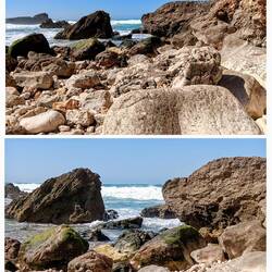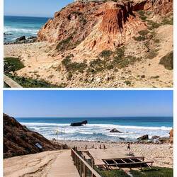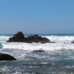 Ik heb nog gezocht naar het punt waar de kliffen de oceaan aan beide kanten ontmoeten, ik heb een foto gemaakt van wat ik denk dat het punt is, daar zie je schuimsporen die ik verder niet tegengekomen ben.