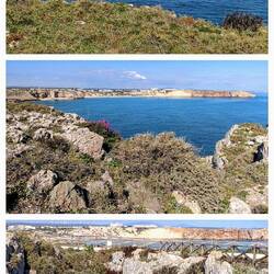 Op de terugweg ben ik afgeslagen naar een strand, het bleek het Praia de Tonel te zijn, het enige strand dat uit stenen bestaat in deze buurt. Dat was nog echt niet makkelijk want ik had er totaal niet op gerekend om dat te gaan doen en had mijn sandalen aan, maar ja nu ik er toch eenmaal was klauterde ik over de grote stenen heen tot ik dicht bij de waterlijn was. Op een mooie vlakke steen kon ik zitten en genieten van het zonnetje, het mooie uitzicht en het geluid van de golven van de Atlantische oceaan die stukslaan op de rotsen. Heerlijk een hele tijd gezeten, maar toen kwam de terugweg. Die ging vanaf de waterlijn omhoog en als je over de stenen omhoog klauterde zakte je steeds naar beneden omdat de stenen dan naar beneden rolden. Afijn de cardio ook al weer gedaan vandaag.