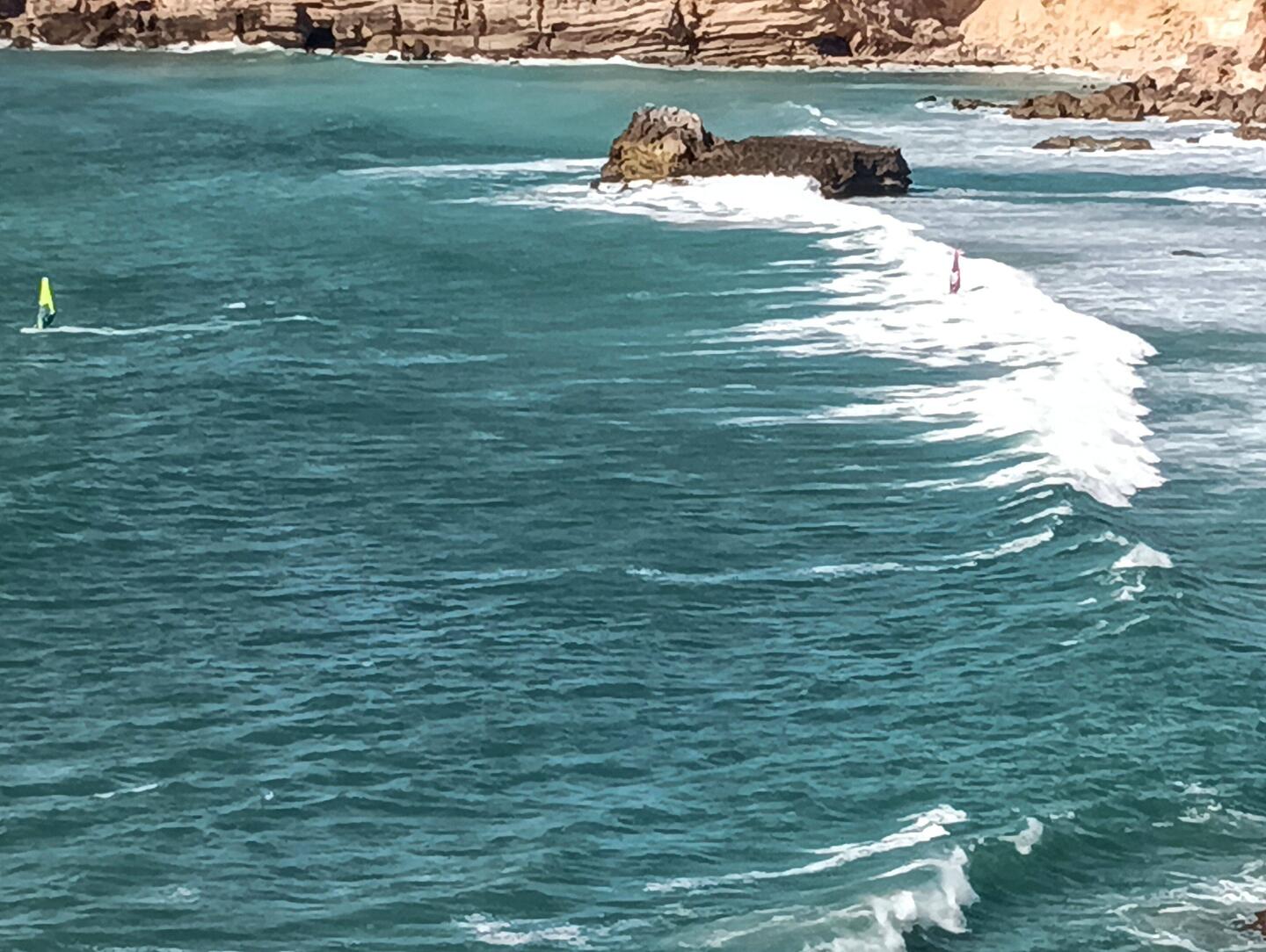 Het windje was wel aantrekkelijk voor de windsurfers, die zag ik vandaag voor het eerst in de weer, de andere keren waren het de surfers die op de golven surfen zonder zeil.