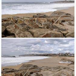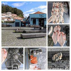 Vanmorgen miezerde het een beetje, met paraplu op weg naar Reis dos Croissants, de buurman had verteld dat ze daar lekkere koffie en gebak hadden. Het was dicht bij het strand en daar ben ik een kijkje gaan nemen, wat is het hier een schitterende, woeste kust. Ieder moment mag je van plan veranderen, dat deed ik dus ter plekke. Niks geen sportschool als je zo'n schitterende mogelijkheid hebt om te wandelen. En als het de komende dagen echt gaat regenen, wat voorspeld is, dan doe ik gewoon mijn poncho aan en gaan met die banaan.