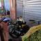 Er zijn veel van die pruttel driewielvrachtwagentjes met spullen in de laadbak en soms zie je daartussen ineens iemand zitten helemaal omringd door spullen.