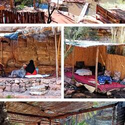 Tijdens een stop hoorden we een luid klaaglijk gehuil, de akoestiek in zo'n Gorge is enorm goed. Er stond een geitje op een richel tegen de steile bergwand. Alle andere geitjes waren al beneden maar deze durfde blijkbaar niet. De herder klom helemaal omhoog boven het geitje en probeerde door roepen en steentjes gooien het geitje in beweging te krijgen.
