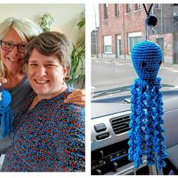 Voor mij heeft ze een grotere octopus gehaakt voor in mijn Octobus, wat lief, hij hangt al aan de spiegel ❤️
