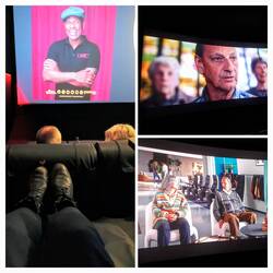 Terug naar de bioscoop, zaal 3, dat was een verrassing zeg, relaxstoelen waarvan de leuning naar achteren kon en een voetensteun die omhoog kon. Zelfs met de voetensteun helemaal uit had je nog ruimte over bij de stoelen ervoor.