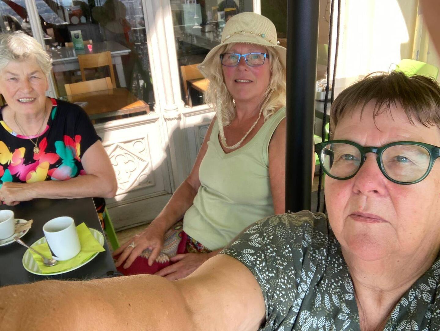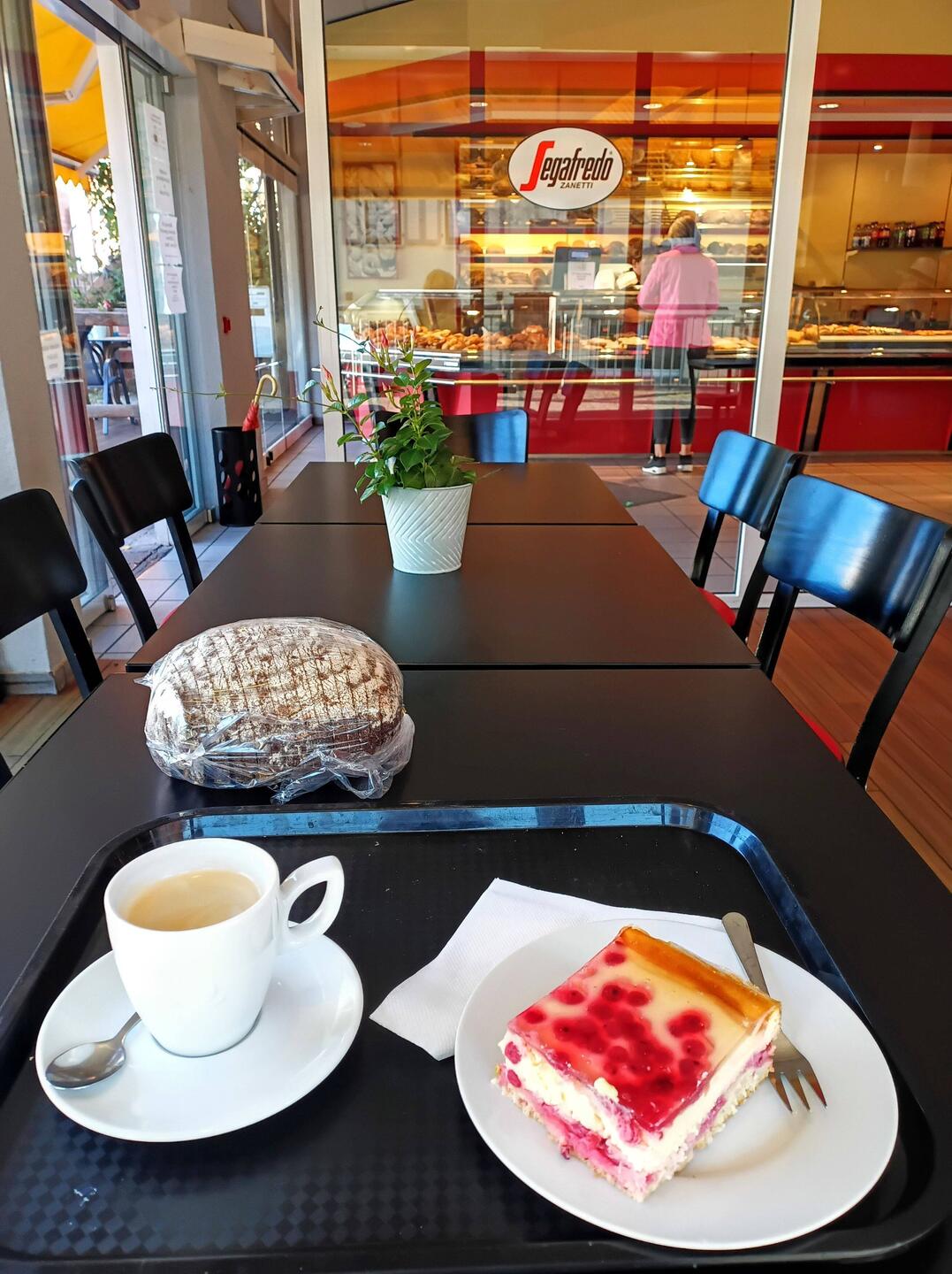 Het is maar een klein stukje zuidelijker geworden. Eerst koffie gedronken in Lambrecht met een stuk Johannisbeerrahm, dat was werkelijk heel lekker, maar wat een grote hap 😋