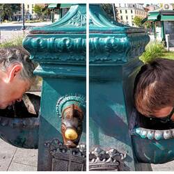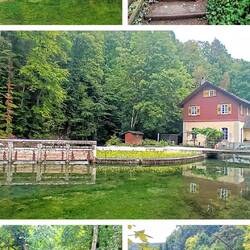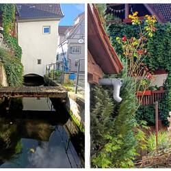 Dan nog even naar de Blautopfbron, nu met het zonnetje erbij. Fotos genomen van dezelfde plekken als gisteren. Ik heb een collage gemaakt van 2 fotos, 1 van gisteren en 1 van vandaag. Zelf vind ik die van gisteren het mooist. Je denkt dat fotos met het zonnetje erbij mooier zijn, maar dat is niet altijd waar. De zon maakt dat er hele lichte plekken zijn en hele donkere schaduwen. Vanmorgen bij het fotograferen van de oude straatjes had ik daar ook last van, soms kon ik een foto gewoon niet maken vanwege de hele donkere schaduwen.