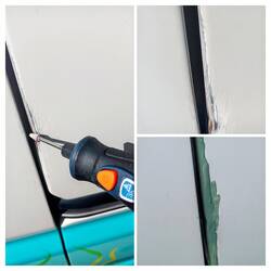 GezginAangifte gedaan, verzekering moet de rest doen. Morgen zoeken naar een camperdealer om de ramen te laten maken. Nu provisorisch gerepareerd