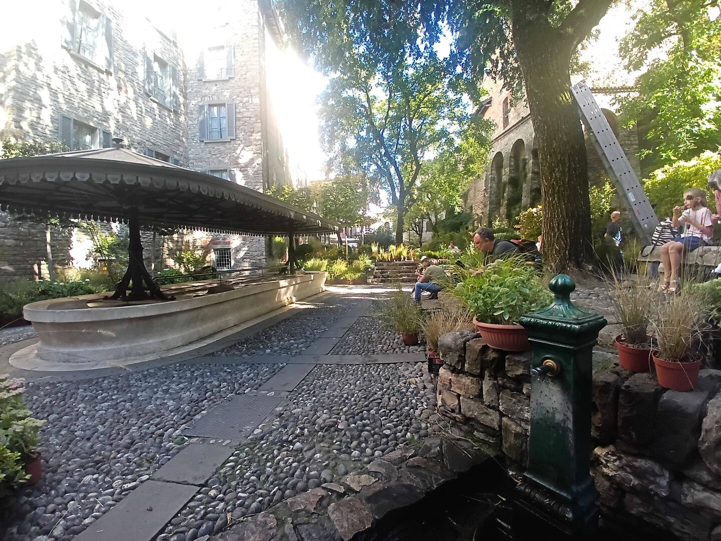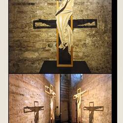 Daarna naar het klooster en het tweede badhuis vandaag, het badhuis van de monniken. Het klooster is prachtig sober en licht, samen met de stilte een hele mooie sfeer. De houten spanten van het plafond geven een apart patroon. De sfeer in het badhuis van de monniken was heel anders. Het was vergeleken bij het klooster veel donkerder. De muren waren gewoon van onbehandeld steen waar allemaal vlekken op zaten, vermoedelijk van het stoken en het vocht. Dat gaf soms mooie kleuren en patronen, waarin ik met mijn grote fantasie natuurlijk allerlei afbeeldingen in zie. Op een muur zag ik zelfs een vrouwfiguur in de muur gekerfd, hè dit waren toch monniken en die zijn toch celibatair?