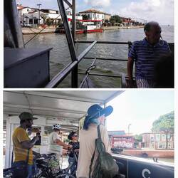 Met de fiets op de drager naar een bikeshop 8 km verder. Onderweg schoot hij er bijna weer af, wat een slechte wegen met diepe gaten.