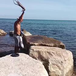 Onderweg nog even naar de zee en daar was een man bezig om inktvissen op een rots te slaan.