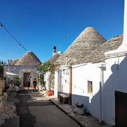 We hebben genoten van de Trulli, meervoud van Trullo, ondanks dat het druk was met groepen toeristen en veel souvenierwinkeltjes.