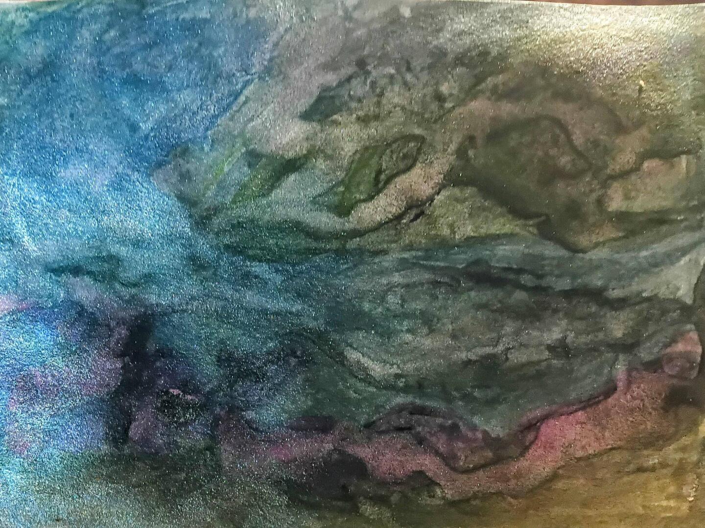 En terwijl Franco aan het koken is ben ik lekker met glitterverf en water aan het spelen, mijn eerste schilderwerkje. De fotos van de zalm etc. volgen morgen welEn savoir plus