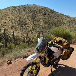 Die Landschaft bot eine Menge Abwechslung. Es gab Momente mühsamen Fahrens durch felsiges und schwieriges Gelände, aber insgesamt war das Abenteuer unvergesslich. Wenn ich jetzt darüber nachdenke, kann ich mit Sicherheit sagen, dass es eine meiner Lieblingsfahrten war. Wenn jemand die Gelegenheit hat, die Arizona BDR zu fahren, empfehle ich es sehr—wählt jedoch eine bessere Jahreszeit als Anfang September! Die Hitze schränkte meine Campingmöglichkeiten ein, und ich denke, Ende September oder Oktober oder sogar im Frühling wäre die bessere Wahl.