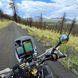 By the time I got to Winona, it was still around lunchtime. I fueled up, grabbed some snacks, and chatted with a few locals before setting off towards Sunset Crater National Monument, where I had originally planned to camp. As I made my way towards the monument, the sandy tracks gradually became more common, filled with volcanic sand. While there were a few deep sections, nothing was overly concerning. Once inside the park, I enjoyed an hour of scenic riding through the volcanic landscape, with views of the cinder cones and volcanoes all around. The sand got a bit deeper, especially on downhill sections, but it wasn't anything too difficult to handle.