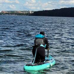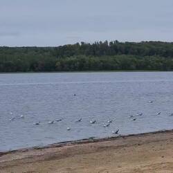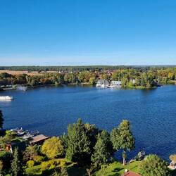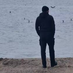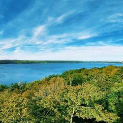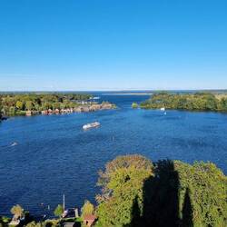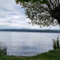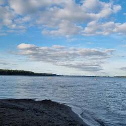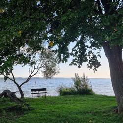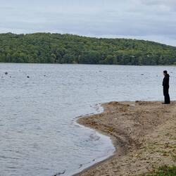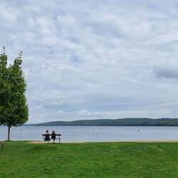 Vor uns ist ein kleiner Hang von ca 6 m und eine klein ne Wiese und dann ist man schon am Wasser.