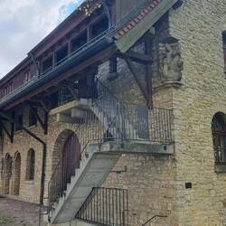 Leider konnte man sie nicht erklimmen. In der Sonne sah sie wegen ihres bunten Glases allemal gut aus.