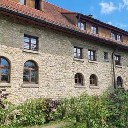 Geparkt haben wir am Dorffriedhof. Die Kapelle ist sehr modern.