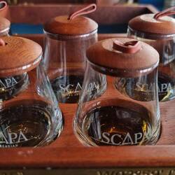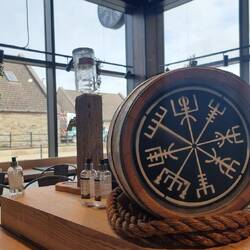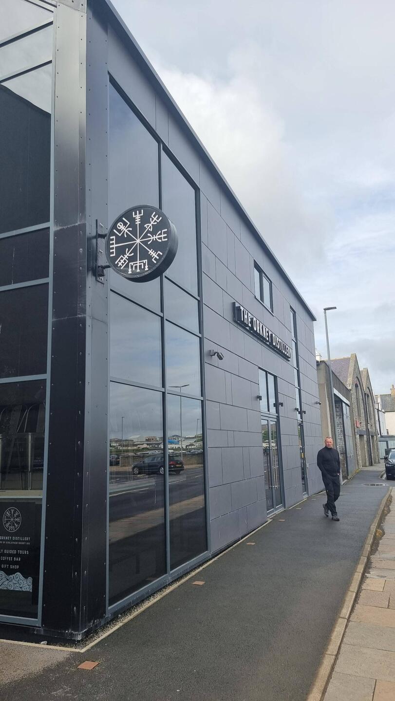 Zur Orkney Distillery. Wir wollen noch wunderschöne nordische Souvenirs mitbringen. Sie tragen das Vigvisier, das Zeichen für eine gute Reise und Schutz auf allen Wegen.
