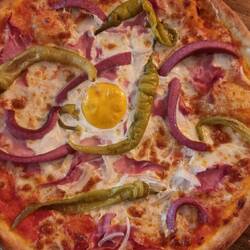 Oli: Pizza mit Würstchen schinken Ei Peperoni
