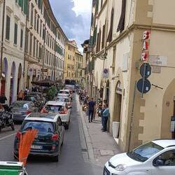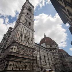 Wir wollen aber zur Kathedrale. Die Straßen sind voll und werden immer voller. Der Strom an Touristen reißt nicht ab. Alles und jeden zieht es gefühlt zur Kathedrale. Zu den jeweiligen Eingängen der Kathedrale sind die Schlangen der Touristen jetzt schon lang. Wir haben uns entschieden die Kathedrale von außen zu bewundern. Dafür gibt es mehrere Gründe: 1. Die langen Schlangen vor den Eingängen , 2. die Eintrittspreise (dazu komme ich gleich). Zu den Eintrittspreisen. Die Kathedrale an sich ist kostenlos. Alles andere -> der Glockenturm, die Kuppel, die Taufkapelle, das Baptisterium kostet Eintritt. Am teuersten ist die Kuppel. Sicherlich auch das Interessanteste für uns, da es eine freitragende Kuppel ist und sie schlägt allein mit 45 Euro zu Buche. Für den Rest braucht man ein Kombiticket für 10 Euro. Also insgesamt 55 Euro. Wir sind auch der Meinung, wenn wir sie uns von innen anschauen dann bitte auch komplett. Aber 55 Euro pro Person halten wir für uns zu übertrieben.