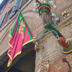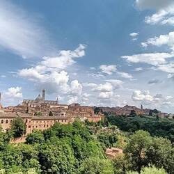 Es ist Mittag und wir genehmigen uns ein Stück Pizza aus dem Laden auf die Hand, welches wir dann auf den Treppen des Piazza Salembeni. Hier ist ein wenig Schatten und es sind nicht viele Menschen hier. Sitzmöglichkeiten findet man in der Altstadt eher wenig. Wir kommen am Piazza Il Campo vorbei, auf dem im Juli immer die Pferderennen der 17 Stadtteile Sienas stattfinden. Das muss ein Spektakel sein. Jetzt sitzen hier die Touristen und schlürfen ihren Aperol Spritz u.a.. Hinter dem Campo wird es dann wieder ruhiger. Die meisten Touristen schaffen es nicht bis nach hinten. Wir aber schon und es gibt auch im hinteren Teil einige interessante Ansichten der Stadt. Auf dem Rückweg streifen wir den Dom, welcher von vorne besser aussieht als von hinten und landen schliesslich an der Festung. Von hier gibt es noch einmal einen wundervollen Gesamtblick auf die Stadt. Wir können sie nur empfehlen.