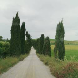 Es geht also zurück Richtung Arbia und dort dann auf die SP438, die Straße welche durch die Terre Senesi führt. Angeblich sollen hier die Bilder der Toskana entstanden sein, welche man auch meist auf Hochglanzfotos zu sehen bekommt. Aber Terre Senesi ist mehr. Mehr an Landschaft und ja die Panoramablicke sind herrlich. Hügel, Felder (die je nach Jahreszeit ihre Farbe ändern) und Straßen gesäumt von Zypressen. Wir haben zwar viele schöne Ausblicke erhaschen können, aber den ultimativen Blick auf eine kurvenreiche weisse Zypressengesäumte Straße haben wir nicht erhalten. Wahrscheinlich muss man höher stehen als die Straßen, um solch eine Blick zu erhalten. Egal, wir haben andere schöne Bilder, in der Kamera und im Kopf, festhalten können.