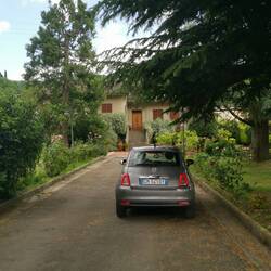 Wir müssen uns erst einmal wieder an die Fahrkultur in Italien gewöhnen und schwupps war die Abfahrt vorbei. Okay, es geht weiter durch enge Vorstadtstraßen Richtung Scandici. Wir sind raus aus der Vorstadt und schlängeln uns auf enger werdenden Straßen durch Wälder und Olivenhaine. Es dämmert und ich schließe Freundschaft mit unserem kleinen Gefährt. Unser Agruturismo ist das Fattoria del Milione. Die Adresse stimmt aber der Eingang liegt etwas weiter, immer der Nase nach. Bevor wir umdrehen wollen, haben wir ihn gefunden. Andrea an der Rezeption berichtet uns das wir ein Upgrade erhalten haben. Ja klar, nehmen wir. Er erklärt uns den Weg zu unserem Zimmer und versorgt uns noch mit einem Croissant 🥐. Das Agruturismo erstreckt sich auf einem großen Gelände und im hinteren Teil steht I Rosso, unser Haupthaus. Es ist urig und sieht super aus. Ein altes Feldsteinhaus mit einer Piazza. Unsere Unterkunft, denn Zimmer ist es nicht mehr, besteht aus zwei Bädern und zwei Schlafzimmern ("das meinte also Andrea an der Rezeption mit dem getrennt schlafen"), sowie einer Küche. Dazu Badewanne, Dusche, BD und alle anderen Annehmlichkeiten. Klasse einfach nur Klasse.