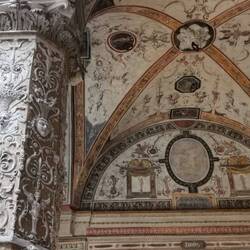 Wir laufen ein paar Schritte weiter zum Piazza della Signora. Es ist immer noch voll. Dennoch können wir die Gegend um den Piazza della Signora empfehlen. Hier steht die Loggia dei Lanzi mit zahlreichen Statuen (auch aus der Mythologie) und der Palazzo Vecchio. Hier muss man keinen Eintritt bezahlen und der Innenraum des Palazzos ist schön anzuschauen. Zahlreiche Verzierungen und Wandmalereien. Es geht also auch ohne anstehen. Einzig für das Museum im Palazzo muss man Eintritt zahlen. Für uns schöner und besser als die Kathedrale. Okay, wir können vom Inneren keine Vergleiche ziehen, da wir ja nicht in der Kathedrale waren, aber wir denken das uns die Kathedrale jetzt nicht den Atem verschlagen hätte.