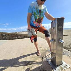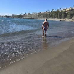 Das Cita Shopping Center wäre noch zu erwähnen. Groß und von außen schick gemacht mit vielen Geschäften im Inneren. Jedoch zu unübersichtlich und dann macht auch so ein Bummel keinen Spaß. Ich bin der Meinung, Orte aus "Goodbye Deutschland" zu erkennen. Jedenfalls war mir so. In der unteren Etage etablieren sich diverse Night Clubs und Swinger Clubs. Also wer auf sowas steht ist hier super aufgehoben. Wir schlendern weiter durch Maspalomas bis wir wieder an der Playa stehen. Knapp 20.000 Schritte haben wir schon geschafft, da passt es ja, dass wir unsere qualmenden Füße im Atlantik versenken. Zum Baden für uns zu kalt durch den Wind, aber für die Füße ist es eine Wohltat.