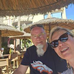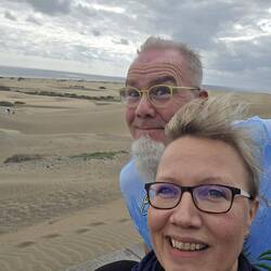Das Hotel hat einiges, von Jacuzzi und Pool mit Poolbar, Fitness und Animation. An den Möbeln erkennt man aber schnell, das alles etwas in die Jahre gekommen ist. Zum relaxen in der Sonne reicht es. Aber eins ist klar, es gibt auch besseres und eine Empfehlung kann es von uns nicht geben. Der Strand ist eine Querstraße entfernt und fußläufig gut zu erreichen. Es ist windig am Meer. Sonni will noch ein Foto von uns machen. Na klar und es geht weiter immer an der Promenade entlang und wir beobachten die Wind- und Kitesurfer. Wir suchen langsam den Weg zurück bis Sonni plötzlich bemerkt, dass sie ihr Handy auf der Bank hat liegen lassen. Oh Gott und das am ersten Tag. Ich habe mein Handy dabei und rufe Sonni ihr Handy mal an. Und siehe da es geht jemand ran. Wir haben leichte Verständigungsschwierigkeiten bis ich weiß das er Holländer ist. Sonni bekommt mein Handy, da sie es besser versteht als ich. "Lauf ruhig" sage ich, " mach dir um mich keine Sorgen und hol dein Handy wieder." An der Bank wo wir gesessen hatten wartet der ehrliche Finder. Ein älteres Paar aus der Gegend von Zwolle. Puh, nochmal gut gegangen.