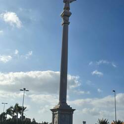 Unsere Route führt uns durch Playa del Ingles dann nördlich am Campo International vorbei, wo wir Christoph treffen...na den Kolumbus, bis hinunter zum Faro de Maspalomas. Links davon befinden sich kleinere Bars direkt am Strand. Es ist voll und das wissen auch die fliegenden Händler, aber sie lassen einen halbwegs in Ruhe. Rechts vom Leuchtturm haben sich die ganzen bekannten Marken, Cartier, Boss, Breitling etc., angesiedelt. Teilweise haben diese dann auch ihre Preise. Günstiger ist man da wirklich in der Fundgrube.