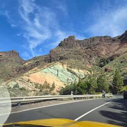 Tejeda ist erreicht, ein kleines Bergdörfchen aber wunderschön. Jetzt ein Snack wäre schön und wir entschließen uns zu einer Tapasplatte. Lecker und sehr empfehlenswert. Das in den Gebieten vor Tejeda Menschen wohnen, verwundert uns etwas. Nachbarn hat man hier keine und wenn man mal die Butter vergessen hat, dann ist man auch erstmal ne Weile unterwegs. Oder man fährt zum nächsten Bewohner und hofft das der noch Butter hat. In Tejeda bekommt man jedenfalls das was man zum Leben braucht. Über die GC 60 geht es über San Bartolome de Tirajana wieder nach Maspalomas. Immer wieder wechselt die Vegetation und die schroffen Felswände nehmen langsam ab.