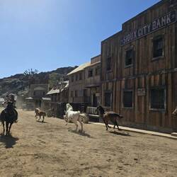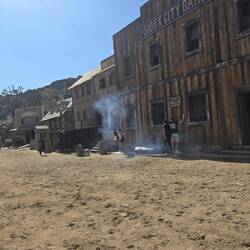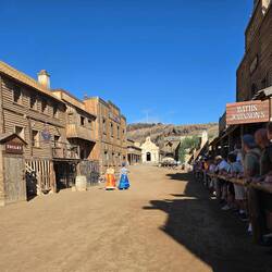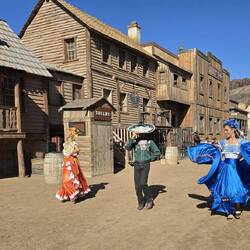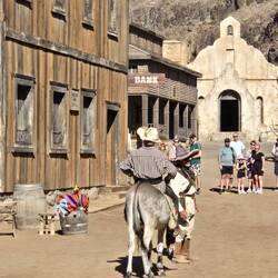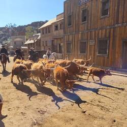 Und wieder einmal sehr ausgeruht geht es in den neuen Tag. Heute soll es in den wilden Westen in den Sioux City Park gehen. Wer hier an der Playa del Ingles ist kann sich bequem den Free Bus zum Sioux City Park nehmen. Wie wir finden eine tolle Sache. Wir laufen also den kurzen Weg bis zur Busstation am Tropical Shopping Center. Auf dem Weg dorthin und dann auch noch an der Busstation werden wir von Straßen Promotern der Anfi del Mar angesprochen. Sie wollen dir so manches anbieten und werben mit einem weißen Strand auf Gran Canaria. Wer also Gran Canaria nur ein klein wenig kennt, weiß das es hier keinen natürlichen weißen Strand gibt. Da fängt die Lüge schon an. Ein einfaches "Nein, danke" und wir warten weiter auf den Bus. Wenn auch ein paar Minuten verspätet, trifft der Bus ein. Nach einigen wenigen Stopps erreichen wir Sioux City Park, nachdem wir eine kleine Unterführung dekoriert mit amerikanischen Flaggen durchfahren werden. Zwei Pistolenschüsse lassen uns vergewissern, dass wir hier richtig sind. Pro Person sind dann 25 € fällig (wir hatten unsere Tickets vorher online gekauft). Zur Main Street geht es vorbei an den Rindern und den Pferden. Beide spielen in den Shows noch eine Rolle. In der Stadt wurde an alles gedacht. Vom Hufschmied über das Gefängnis bis hin zum Undertaker. Der Saloon mit seinem Theater ist das Highlight der Stadt. Um 11 Uhr beginnt die erste Show und die zweite Show, mit Pferde und Viehtrieb durch die Stadt, schließt sich an. Bis 15 Uhr folgen drei weitere Shows oder Aktivitäten. Langeweile kommt also nicht wirklich auf. Zwischendurch einen kleinen Snack und das eine oder andere Getränk am Tresen.