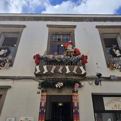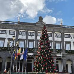 Nach 40 Minuten Stehen, erreichen wir die Station San Telmo. Von hier aus ist man schnell in der Altstadt, in Vegueta. Anfangs etwas ziellos und nach einem Kaffee, laufen wir zum Casa de Colon, dem Kolumbushaus. Für das Museum bezahlt man 4 € pro Person. Die Reisen des Kolumbus werden vertieft und das Haus ist toll gemacht. Man betritt im ersten Raum eigentlich das Schiff des Kolumbus und der Eindruck wird durch alle Räume beibehalten, außer in der Toilette, dort liegt das Ei des Kolumbus, zumindest auf der Herrentoilette, ich kann es beschwören. ;) Sehr schön. Wir schlendern weiter zum Plaza de Santa Ana und der Catedral de Santa Ana. Ein schöner Platz der von mehreren Hunden bewacht wird. Gegenüber der Catedral steht noch der wundervoll geschmückte Weihnachtsbaum. Herrlich.